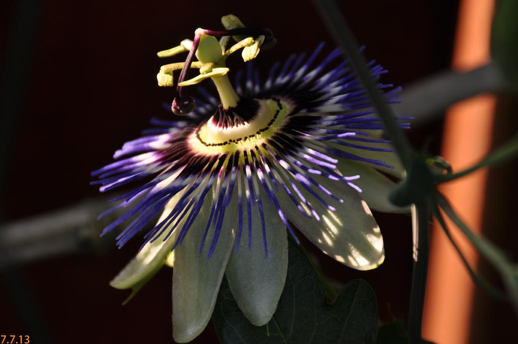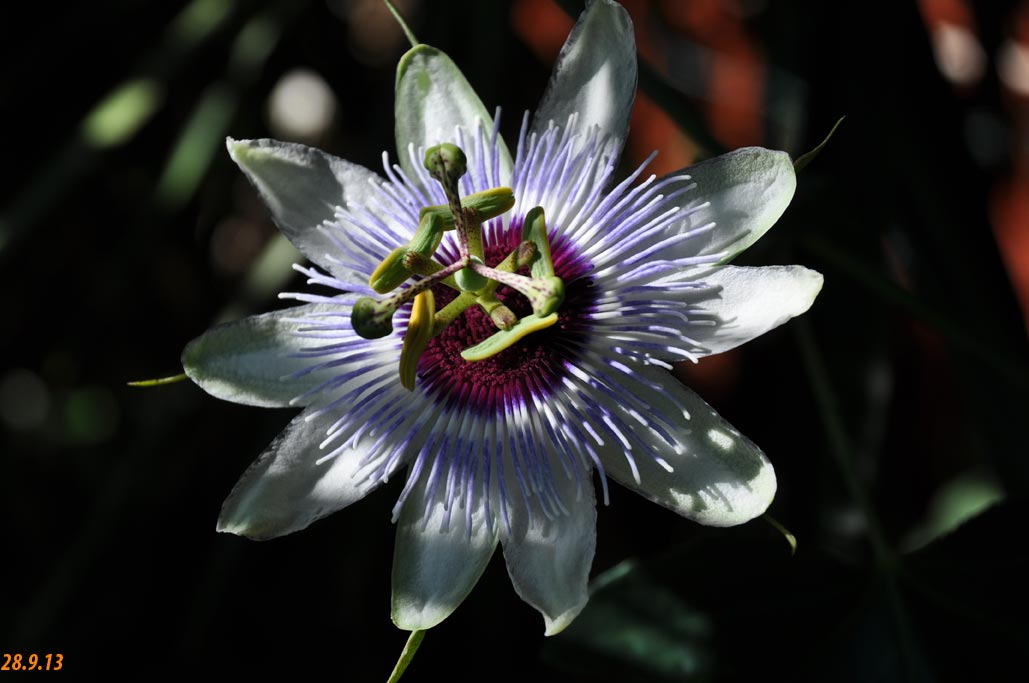 Passiflora AnastasiaHierbei handelt es sich um eine Kreuzung zwischen P. gritensis x P. caerulea ´Constance Eliott`. Herausgekommen ist eine sehr hübsche, farbenprächtige Passi, die problemlos in der Pflege und sehr blühwillig ist. Bei mir steht sie im Sommer auf der Terrasse an einem eher schattigen Platz,an dem sie nur für einige Stunden volle Sonne bekommt - womit sie sich aber völlig zufrieden gibt. Überwintern sollte sie bei etwa 10°C. Wenn es mal kälter wird ist das kein Problem. Ich hole sie meist erst beim ersten Frost rein und an ihrem Überwinterungsplatz liegt die Temperatur oft auch nur bei 2-5°C.