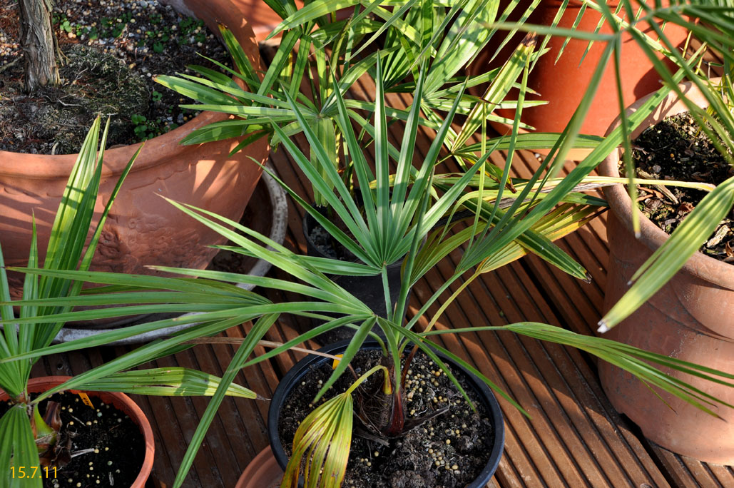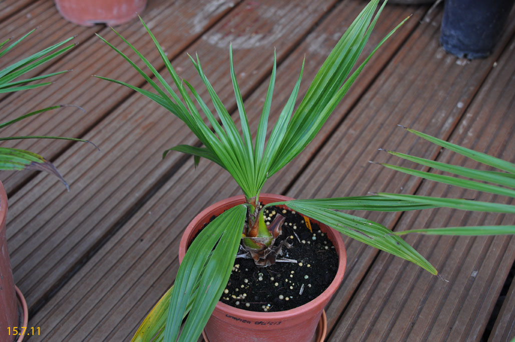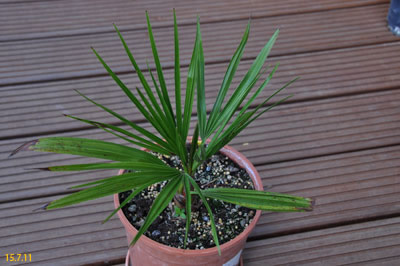 Brahea "super silver"Brahea "super silver" - Wortschöpfung kreativer Händler, um eine Brahea armata besser vermarkten zu können, oder steckt wirklich mehr dahinter? Um dies herauszufinden, hab ich ein paar € investiert und mir dieses Pälmchen zugelegt. Hm, damit haben die kreativen Händler immerhin bei mir bereits ihr Ziel erreicht, aber na ja, mal sehen... ;-) 2011