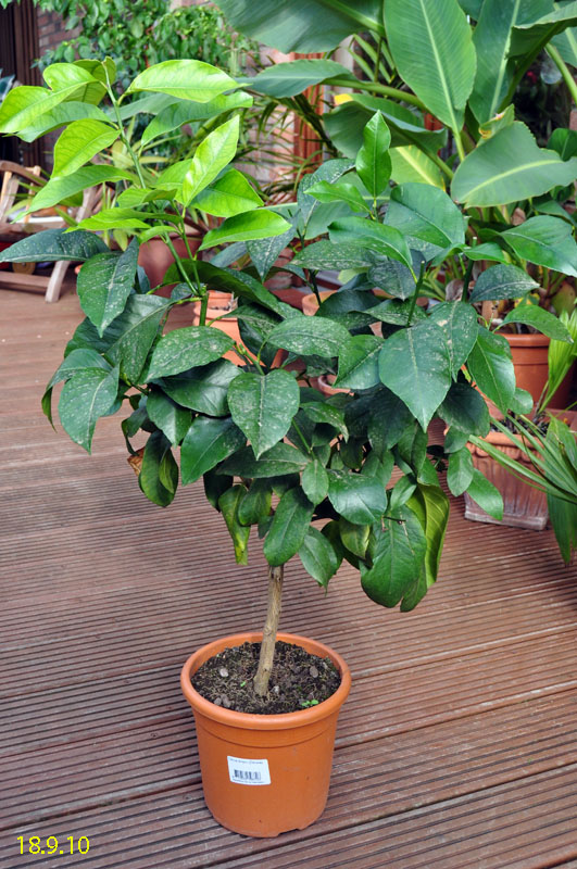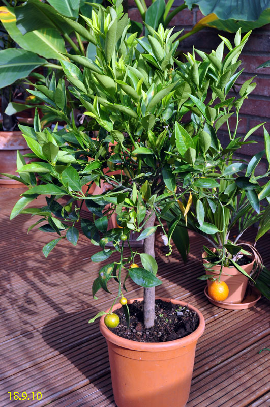 Diese Citrussorte habe ich im Winter 09/10 im Gegensatz zu den anderen Citrussen in der Firma bei 2-10°C an einem Südfenster überwintert. Während alle Citrusse die mit leichtem Frost in einem Palmenschutz im Freien überwintert wurden alle ihre Blätter behalten haben, hat dieser Citrus zum Ende des Winters sämtliche Blätter abgeworfen.