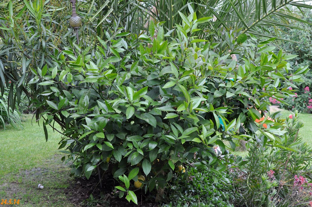 Seit der Auspflanzung hat sich die Meyerii super entwickelt. Ausgepflanzt gibt es keinerlei Probleme mit gelben Blättern etc.. Man sieht der Zitrone an, dass sie sich pudelwohl fühlt.