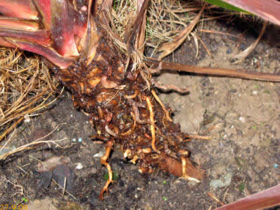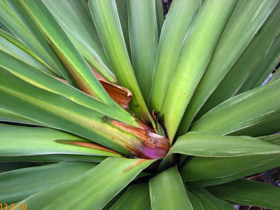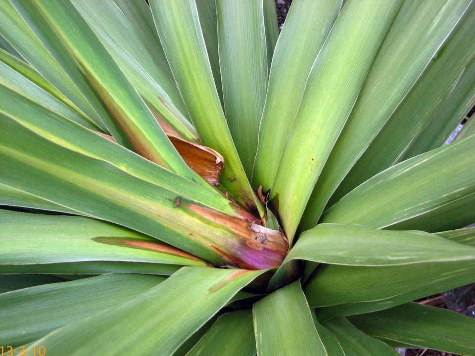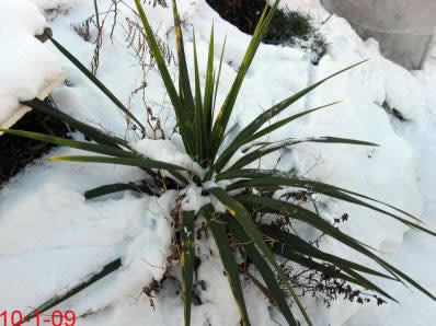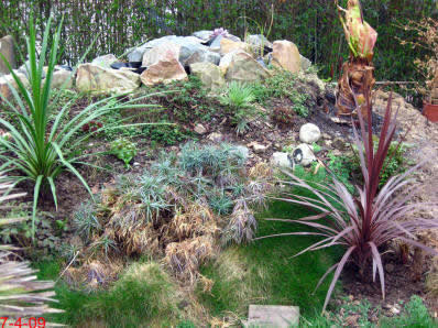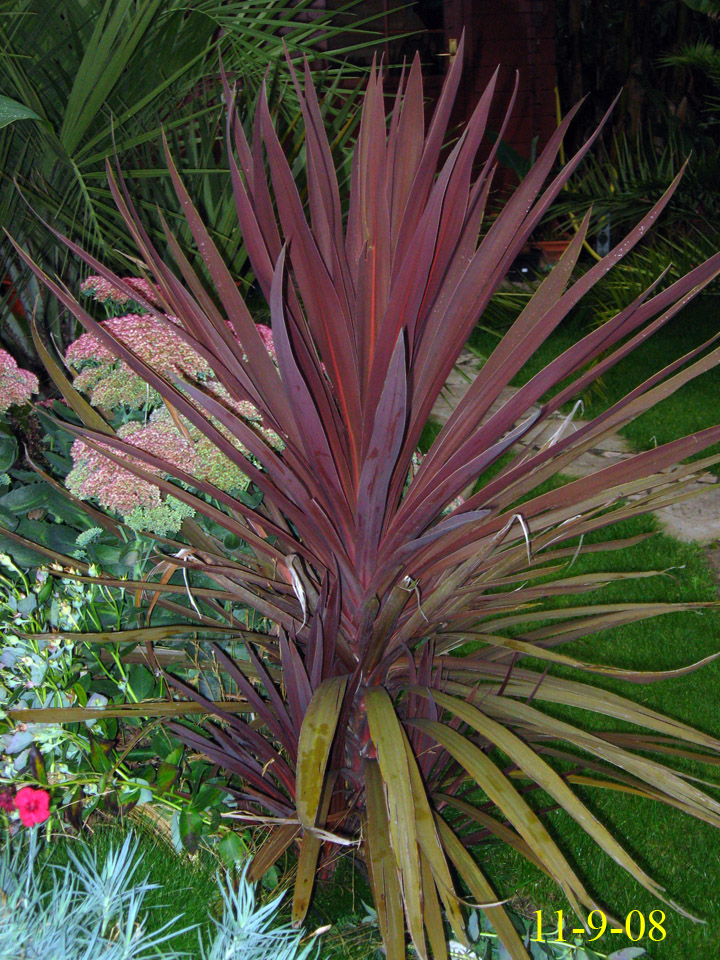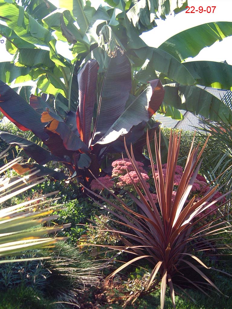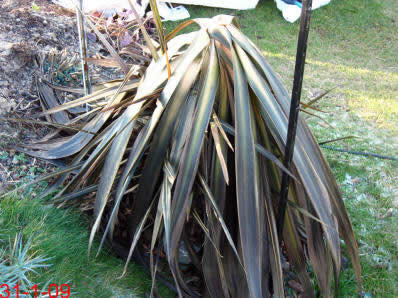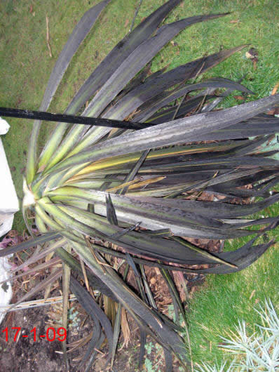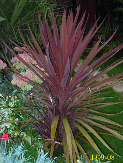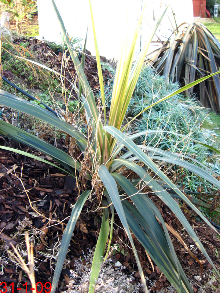 CordylineCordyline australis "Red Star" (Rote Keulenlilie)diese rote Form der Keulenlilie stammt aus Neuseeland und ist völlig unproblematisch zu halten. In Neuseeland gibt es mehrere hundert Jahre alte Exemplare, die gigantische Ausmaße annehmen können. Ihre Winterhärte liegt unterhalb der der grünen Cordyline und wird meist mit -5 bis -8°C angegeben.Hier ein Link zu Cordylines in Neuseeland: http://www.nzplantpics.com/sfeature_galleries/cordyline_gallery.htm Meine Cordyline australis "Red star" habe ich im Frühjahr 2007 in Holland für sage und schreibe 3€ gekauft und gleich im Garten ausgepflanzt, obwohl ich natürlich schon wusste, dass dies ein gewisses Risiko darstellen würde, da sie doch um einiges weniger Frost vertragen sollte, als z.B. die grüne Cordyline. Dennoch dachte ich mir, zu diesem Preis könne man das ruhig probieren... So habe ich sie nicht einmal im ersten Winter geschützt, obwohl die Blätter zum Teil sicher aus einem Gewächshaus stammten. Lediglich in den kältesten Nächten (kurzzeitig -9°C in den Morgenstunden) habe ich sie mit einem Vlies umwickelt, Nächte mit -4 bis -5°C musste sie ohne Schutz überstehen und hat das auch blendend geschafft, lediglich einige Risse in den Blättern waren zu sehen. Im Frühjahr 2008 habe ich sie einmalig mit Auxin gegossen, worauf sie prompt mit vielen kleinen Ablegern reagierte. Den Winter 2008/2009 hat die Cordyline leider nicht überstanden, da sie bei Temperaturen bis -16,5°C und mehreren Tagen Dauerfrost im zweistelligen Minusbereich lediglich in ein Vlies eingewickelt war. Mal sehen ob sie im Frühjahr noch einmal austreibt, aber ich denke, die Chancen stehen nicht gut. Da ich mir die Stummel nicht länger ansehen wollte habe ich neue Cordies neben den alten gepflanzt. So haben die erfrorenen Cordies weiter die Chance neu auszutreiben... Und siehe da, Anfang Mai zeigt sich an der roten Cordyline wieder Leben. Mehrere Triebe sind zu sehen... Die rote Cordyline wurde gleichzeitig in gleicher Größe mit der grünen Cordyline gepflanzt, wollte aber nicht so recht wachsen. Nun weiß ich auch warum, allerdings nicht wie es dazu kam..., bemerkt habe ich es erst jetzt, weil der Stamm unter Bärenfellgras normalerweise nicht zu sehen ist. 2010Im Winter 09/10 wurden die Cordies dick gemulcht und per Vlies geschützt. Als Beheizung diente etwa ein halber Lichtschlauch, der am UT-100 der Butia angeschlossen war, die ab -6°C beheizt wurde. Als es unter -10°C kalt wurde, habe ich zusätzlich eine Gewebeplane über das Vlies geworfen. Resultat ist, dass die rote Cordy auch dieses Jahr wieder bodeneben zurückgefroren ist- mein Fazit: Rote Cordies sind nur mit einem beheizten Vollschutz zu überwintern. Mehr als -6°C sollte man ihr bei länger anhaltenden Kaltphasen nicht zumuten. Dennoch entpuppen sich die Cordies (sowohl red wie auch green) als Stehaufmännchen. Auch dieses Jahr treiben sie wieder aus. Da sie aber auf diese Weise nur vor sich hindümpeln, habe ich die Auspflanzung von Cordyline erst einmal auf Eis gelegt bis ich einen geeigneteren Standort zur Verfügung habe. 4.10.12 - Im Sommer 2011 habe ich dann mein Braheabeet neu gestaltet und dadurch wurde dann ein Plätzchen für einen neuen Versuch mit der roten Corsy frei. An dieser Stelle wird das komplette Beet im Winter geschützt, da dort die Brahea, eine Parajubaea und zwei C. revoluta gepflanzt wurden. Also ein gutes Plätzchen für die rote Cordy. Die rote Cordy steht ein wenig im Schatten der Brahea und wächst deshalb nicht ganz so kräftig wie mein früheres Exemplar am Bachlauf. Nicht schlimm, von mir aus kann sie sich Zeit lassen... Winterschäden gab es bei Beheizung ab -4°C natürlich keine. Cordyline australis (green)20082009Die grüne Cordyline hat den Winter 2008/2009 nicht geschafft - wurde allerdings auch nicht geschützt. Vielleicht treibt sie ja wieder aus, aber auch hier mache ich mir keine großen Hoffnungen. 2010Auch die grüne Cordyline hat den langen Winter 09/10 wieder nicht geschafft. Zunächst sah sie noch ganz gut aus, später knickte die Spitze ein und man konnte die Neutriebe aus dem Wachstumszentrum herausziehen. Ich denke allerdings, dass sie sich wieder erholen wird. 5.10.12 - Die grüne Cory hat einige Seitentriebe gebildet und führt nun seit 2010 ein Schattendasein hinter der Butia. Ich hatte sie dort so gepflanzt, dass sie gerade eben noch mit in den Winterschutz der Butia passt, andererseits aber dort recht unauffällig bleibt bis sie wieder einigermaßen aussieht. Die Regeneration dauert nun bereits recht lange, aber immerhin, sie wächst und sieht zumindest immer besser aus.
