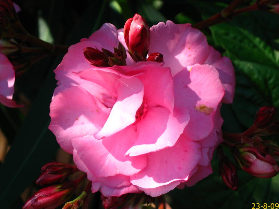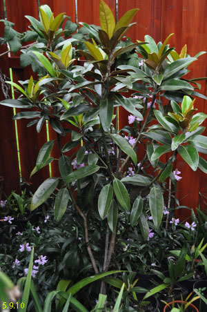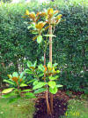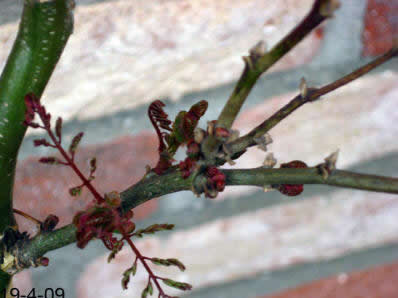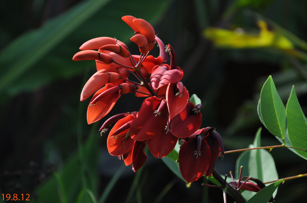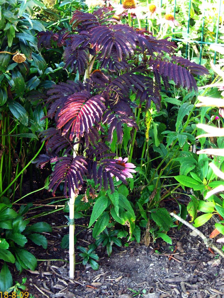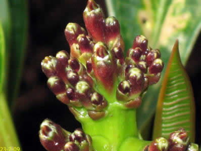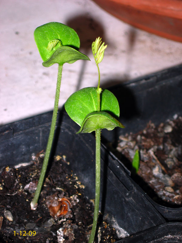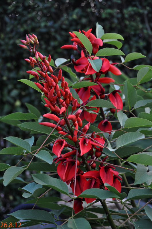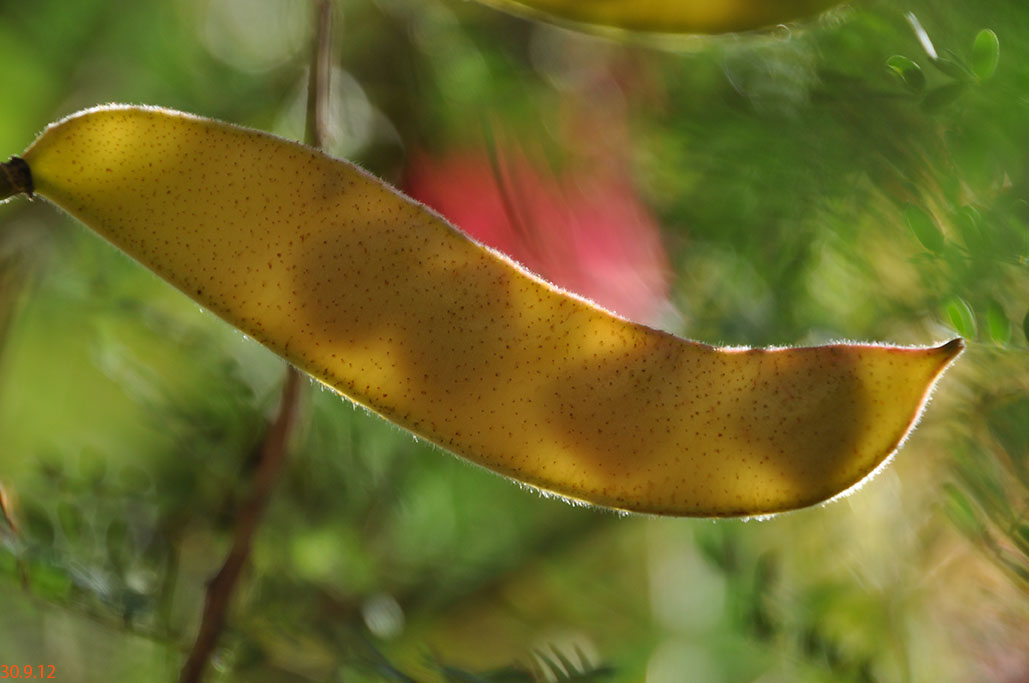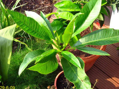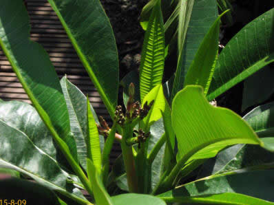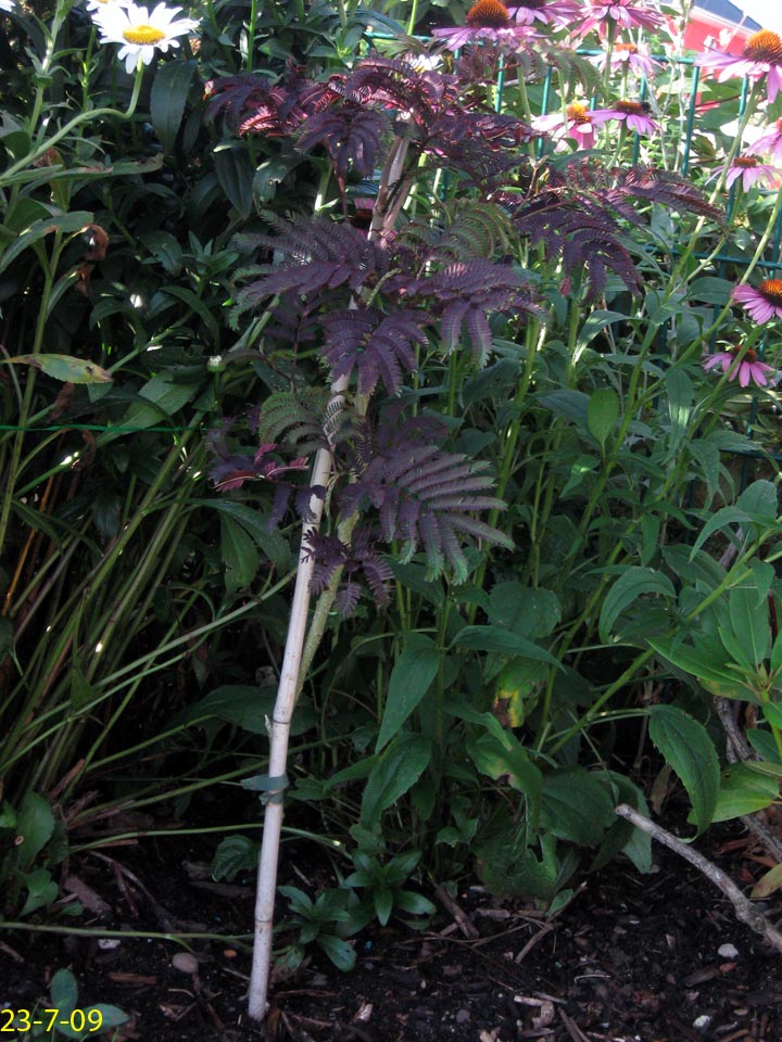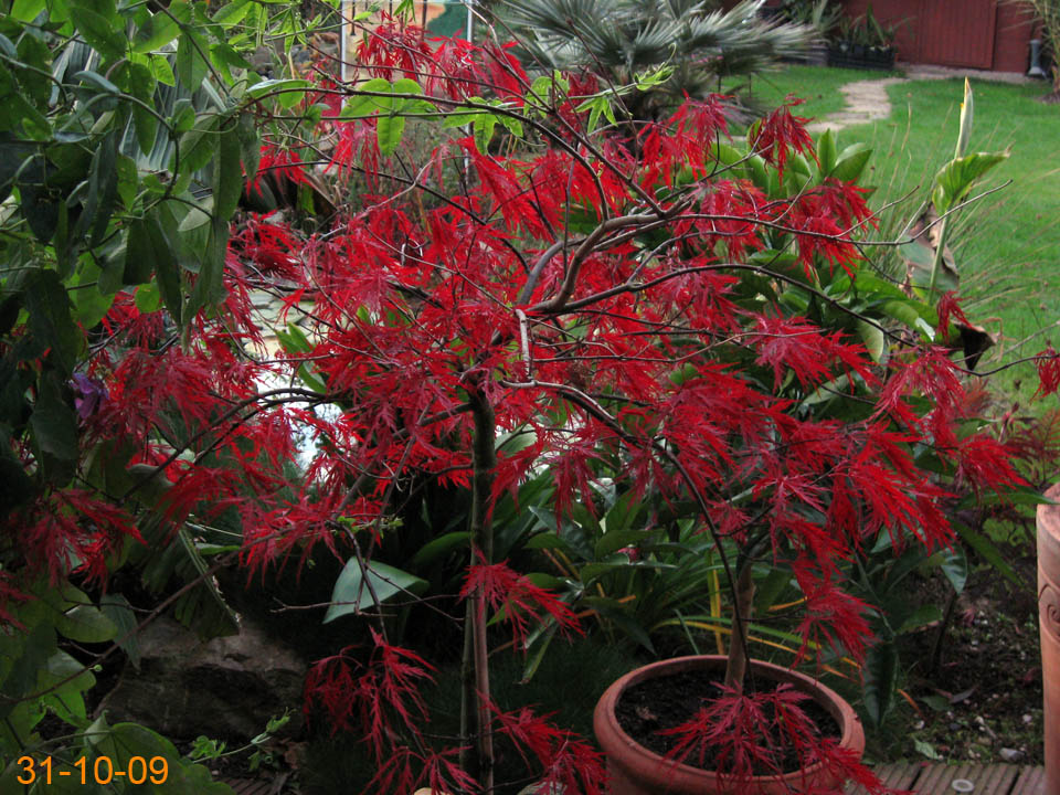Caesalpina gilliesii hat den Winter 08/09 im Topf bei -6°C überlebt und wurde nun an der Hauswand ausgepflanzt. Seit einigen Tagen treibt die Pflanze nun - Ende April - aus... Samenschoten der Caesalpinia. Von diesen Samen habe ich im November 09 vier Samen in einen Topf mit Erde gesetzt. Bereits einen Tag später waren die ersten Wurzeln zu sehen und die Keimlinge legen trotz kühler Temperaturen (tagsüber 15-18°C, nachts etwa 10°C) ein ordentliches Wachstum an den Tag. Die Überwinterung draußen hat im Winter 09/10 wie es bisher aussieht super funktioniert. Natürlich hatte sie einen idealen Standort an der Westseite des Hauses und profitierte sicher auch von der Wärme der Kellerwand, so dass der Boden sicher nicht gefroren war, da zusäzlich obenrum noch eine dicke Mulchschicht lag. Ich hatte die Caesalpinia mehrlagig in ein gewöhnliches Winterschutzvlies eingewickelt (etwa drei Lagen) und als es dann immer kälter wurde zusätzlich eine Vliesdecke aus dem Rettungsdienst um die Pflanze gewickelt. Als ich die Vliese nun Ende Februar entfernte traute ich meinen Augen kaum, dass die Blätter zwar vertrocknet, aber immernoch grün waren. Auch die Ästchen sind bis in die Spitzen grün, es sind keine Erfrierungen zu erkennen. Da der Winter 09/10 sehr lange dauerte und das Frühjahr ebenfalls sehr lange sehr kalt war trieb die Caesalpinia erst relativ spät aus. Dadurch, dass es dann Ende Juni sehr heiß wurde, holte sie aber schnell auf und begann schnell zu blühen. Bereits Mitte Juli gibts die ersten Samenschoten. Beim Winterschutz zeigt sich wie sehr die Caesalpinia dieses Jahr gewachsen ist. Die Vliesdecke reichte nicht mehr aus. Inzwischen hat die Caesalpinia ordentlich an Volumen gewonnen und ich denke, dieses Jahr komme ich um einen Rückschnitt nicht drumrum um sie noch einigermaßen in Vlies packen zu können. Dieses Jahr scheint ein außerordentlich gutes Caesalpinia-Jahr gewesen zu sein, denn sie blüht nun bereits seit Anfang Juni unaufhörlich und ein Ende ist nicht abzusehen. Wer diesen wunderschönen Dauerblüher nicht pflanzt ist selbst schuld! ;-) Magnolia grandiflora "Alta"Nerium oleander2011"Villa romaine" 2010Von Michael aus Oberhausen habe ich drei Oleander "Villa romaine, Italia und Lluteum plenum" geschenkt bekommen. Den "Villa romaine" und "Luteum plenum" habe ich nahe der Phoenix ausgepflanzt, so dass sie im Winter durch den beheizten Phoenixschutz ebenfalls geschützt werden. Der Italia bleibt vorerst im Kübel. 2009Oleander der Sorte "Italia" sind im Winter 08/09 erfroren. Bisher sieht es nicht so aus, als würde er noch einmal austreiben. Eucalyptus gunniiGleich im ersten Winter 09/10 erfroren.. :-( Strelitzia reginaeAcer palmatumPrunus persica nucipersicaVitus "Himrod"