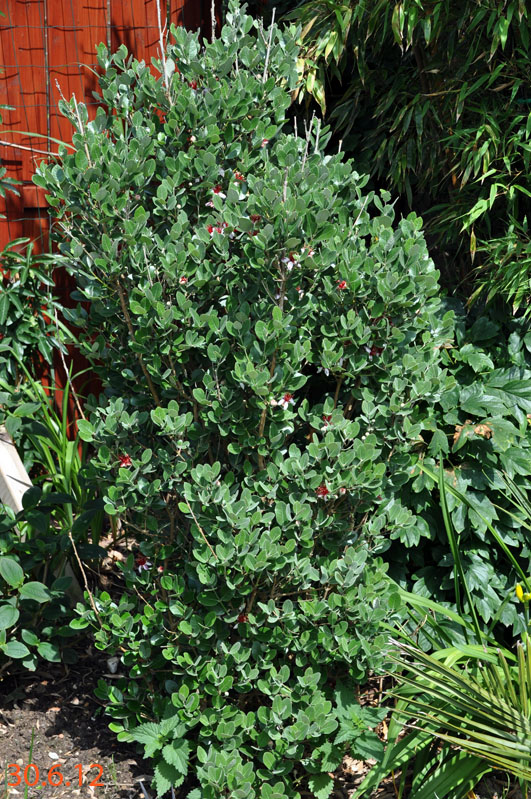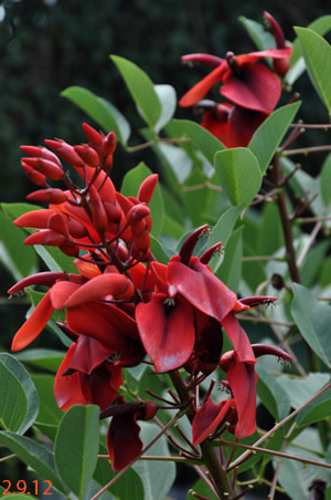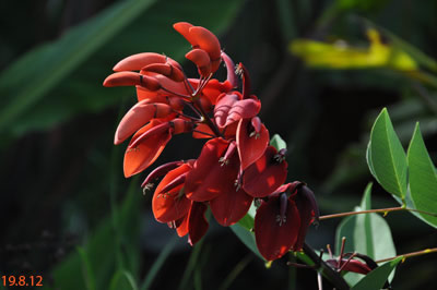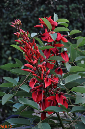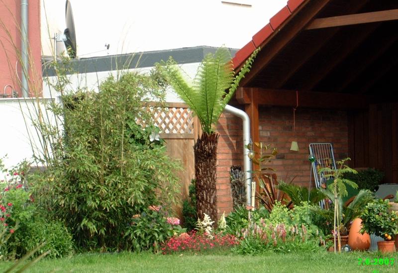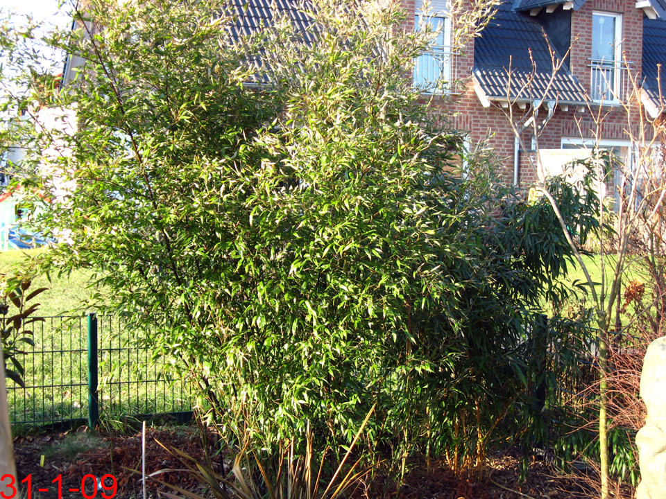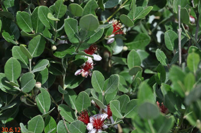 Paeonia suffruticosaPhyllostachys nigraAuch der Bambus hat nach dem Winter 08/09 viele Blattschäden, erholt sich aber und treibt Ende April neue Halme. Phyllostachys vivax aureocaulisDer letztes Jahr mit etwas über 1m Höhe gepflanzte Vivax hinten rechts) hat den 4 Jahre alten P. nigra (vorne links) bereits überholt. Bin gespannt wie schnell der weiter in die Höhe schießt... Magnolia grandiflora (no name)Albizzia julibrissin 'Summer chocolate'Nach dem harten Winter 08/09 hatte ich schon Befürchtungen die Albizze könnte erfroren sein, da zumindest die Astspitzen ziemlich tot aussahen, aber siehe da, die "Summer chocolate" lebt und beginnt auszutreiben. Pinus pineaCamelia "Lady Campbell"Aspidistra elatior (Schusterpalme)Der erste Wintereinbruch im Dezember 2009 mit -12,7°C machte der Pflanze wie es scheint nichts aus. Phormium tenaxPhormium tenax "purpureum"Nach dem Winter 09/10 nicht wieder ausgetrieben Ravenala madagascariensis (Baum der Reisenden)CallistemonAcca sellowiana - Ananas-Guave - (O.Berg) BurretDieser immergrüne Baum, der eher wie ein Busch wirkt, stammt aus der Familie der Myrtengewächse und erreicht eine Größe von etwa 4-5m. Ursprünglich stammt diese Pflanze aus Südamerika, wo sie überwiegend in Südbrasilien, Nordargentienien Paraguay und Uruguay vorkommt. Auffällig ist ihr auf der Oberseite sehr kräftiges dunkelgrünes Laub, dass einen starken Kontrast zu den silbrig-weißen Blattunterseiten bildet. Sowohl die Blüten, wie auch die Früchte sind essbar. Die stark duftenden Früchte sollen an eine Mischung aus Erdbeere und Ananas erinnern und sehr schmackhaft sein. Die Angaben zur Winterhärte dieser schönen Pflanze sind sehr unterschiedlich. So findet man meist Erfahrungsberichte im Internet, die ihr eine Frosthärte zwischen -8 bis -12°C zugestehen. Es gibt aber auch Berichte, wonach sie auch wesentlich tiefere Temperaturen überlebt haben soll, wenn auch unter totaler Defoliation. Weitere Infos: http://de.wikipedia.org/wiki/Brasilianische_Guave 30.6.12 Nach meinen bisherigen Erfahrungen übersteht die Ananasguave Winter mit bis zu -15°C mit einem Vliesschutz. Allerdings verliert sie dabei zumindest teilweise ihre Blätter, die aber im Frühjahr recht schnell wieder austreiben. Den letzten Winter hat meine Acca zumindest etwa die Hälfte der Blätter behalten und sieht dieses Jahr sehr schön voluminös aus und bildet eine Menge Blüten. Arbutus unedo - Erdbeerbaum - L.Erdbeerbäume gehören zu den Heidekrautgewächsen. Die Gattung Arbutus umfasst 10-11 Arten. Der A. unedo gehört zu den westlichen Erdbeerbäumen und kommt im Mittelmeerraum und an der Atlantikküste bis nach Irland vor. Auffällig ist sein rötlicher Stamm, von dem im Laufe der Zeit oft die Rinde abplatzt und ihm dadurch ein typisches Aussehen verleiht. Es handelt sich um immergrüne Bäume - auch oft strauchartig, die rötliche, an Erbeeren erinnernde Früchte (Beeren) tragen. Die Früchte sind essbar, sollen aber eher mehlig und nicht sehr schmackhaft sein. Die Frosttoleranz ausgepflanzter Exemplare soll bei kurzfristig etwa -8°C liegen. Auch tiefere Temperaturen soll er überstehen können, allerdings unter Blattverlust und Zurückfrieren. Senna didymobotrya, syn. Cassia didymobotrya, (geflügelter Kerzenstrauch)Sennas gehören zur Unterfamilie der Johannisbrotgewächse (Caesalpinioideae) innerhalb der Familie der Hülsenfrüchtler (Fabaceae). Sennas kommen überwiegend in den Tropen vor, einige wenige Arten auch in gemäßigten Gebieten. S. didymobotrya stammt ursprünglich aus tropischen Gebieten Afrikas und wächst dort als immergrüner, etwa 3m hoher Strauch (teilweise auch bis 6m). Leider ist die Pflanze nicht winterhart und sollte im Herbst rechtzeitig vor dem ersten Frost eingeräumt werden. Man kann sie entweder kühl (möglichst nicht unter 10°C) und relativ trocken (niemals austrocknen lassen) überwintern, oder z.B. in einem Wintergarten durchkultivieren. Bei entsprechendem Licht- und Wärmeangebot blüht sie bis auf eine Pause im Februar/März fast das ganze Jahr durch. Grundsätzlich ist die Senna sehr pflegeleicht und stellt keine besonderen Ansprüche an den Boden (normale Pflanzenerde). Sie mag einen sonnigen Platz und sollte stets feucht gehalten werden. Bei kühler Überwinterung sollte man die Pflanze entweder im Herbst beim Einräumen oder im Frühjahr wenn der erste Austrieb sichtbar wird etwa um die Hälfte zurückschneiden, dabei aber niemals in altes Holz schneiden, da sie daraus nur noch spärlich austreibt. Duchkultivierte Pflanzen brauchen nur ausgelichtet zu werden. Verblühte Blüten sollten entfernt werden, dadurch bilden sich schneller neue Blüten. Die meisten Cassiaarten sind bei Verzehr giftig. Einige Arten werden zur Arzneimittelherstellung verwendet. Erythrina crista-galli C.v. Linné (Korallenbaum)E. crista galli ist wohl der bekannteste Korallenbaum. Seine Heimat liegt in Brasilien, Paraguay, Uruguay und Argentinien (Nationalbaum). Er gehört zur Unterfamilie der Schmetterlingsblütler (Fabaoideae) in der Familie der Hülsenfrüchtler ( Fabacae). Oft wird er auch als Korallenstrauch bezeichnet, was wahrscheinlich daran liegt, dass er hier in unserem Klima fast ausschließlich als Kübelpflanze gehalten wird und dann auch nur etwa eine maximale Höhe von 3m erreicht, obwohl es sich in Wirklichkeit um einen Baum handelt. Oder handelt es sich bei der im Handel meist angebotenden Sorte "compacta" tatsächlich um eine kleinbleibende Zuchtform? Nicht nur die Blüten, die dem Baum den Namen gegeben haben (crista-galli= Hahnenkamm) sind wegen ihrer intensiv roten Färbung sehr auffallend, sondern auch der Rest der Pflanze. Die Wurzeln sind stark verdickt und knollig, ebenso wird der Stamm mit zunehmendem Alter dick und knorrig, so dass er an Weinstöcke erinnert. Aus dem Stamm bilden sich an "schlafenden Knospen" Zweige von denen die Blatttriebe abgehen aus denen sich dreifiedrige Blätter entwickeln. Die Zweige sind stark bedornt, so dass man dem Kor