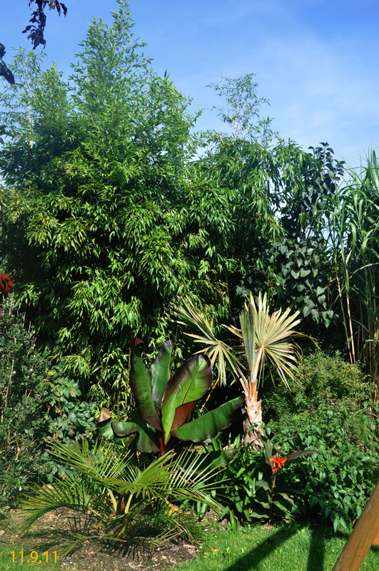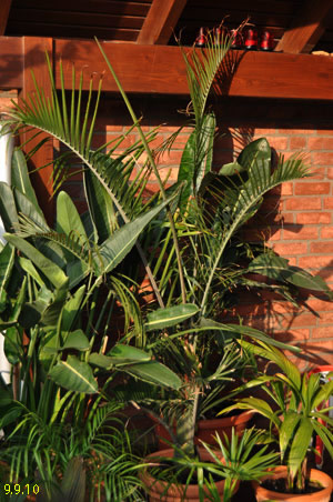 Diverse ExotenPassiflora - Pandanus utilis - Cornus cousa "satomi" - Plumeria frangipani - Caesalpinia gilliesii - Magnolia grandiflora "alta" -Nerium oleander - Eucalyptus gunnii - Strelizia reginae - Acer - Prunus persica nucipersica - Vitus "Himrod" - Paeonia suffruticosa -Phyllostachis nigra - P. aureocaulis vivax - M. grandiflora "no name" - "Albizzia julibrissin "summer chocolate" und "ombrella" -Pinus pinea - Camelia "Lady campbell" - Aspidistra elatior - Phormium tenax "purpureum" -Ravenala madagascariensis - Callistemon - Acca sellowiana - Arbutus unedo - Senna didymobotrya - Erythrina crista-galli