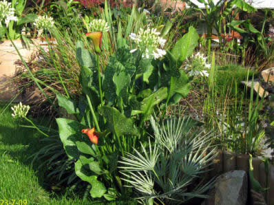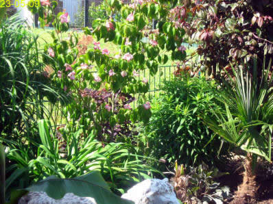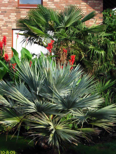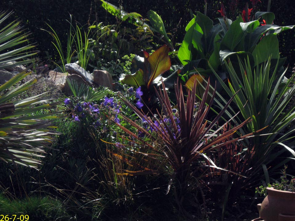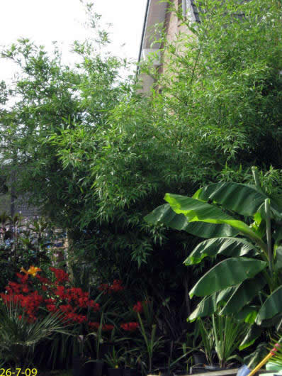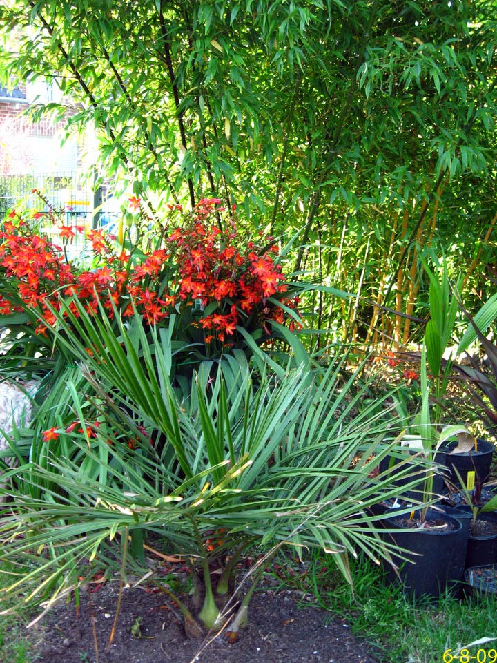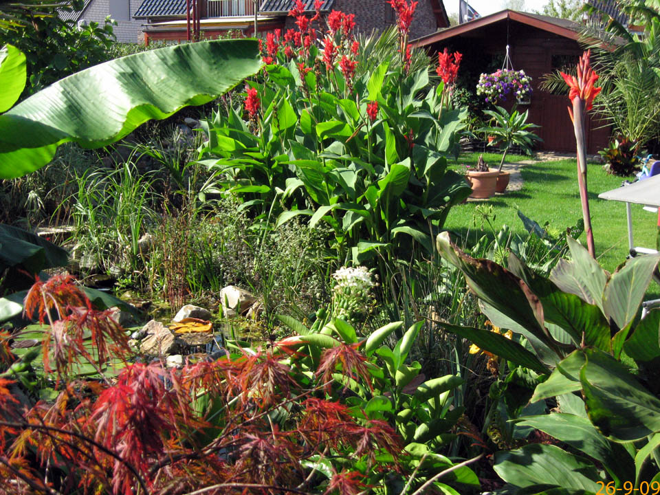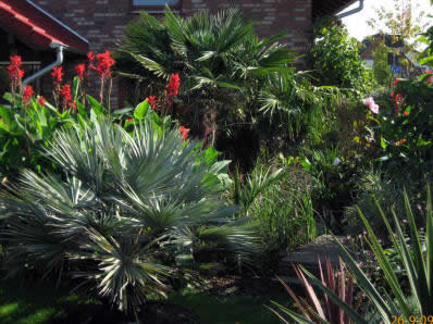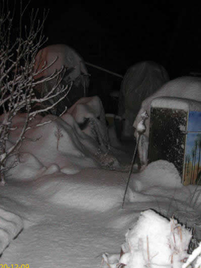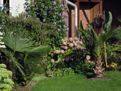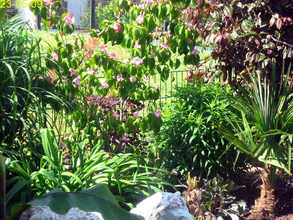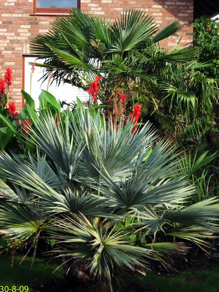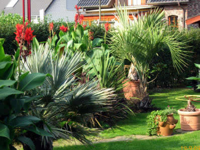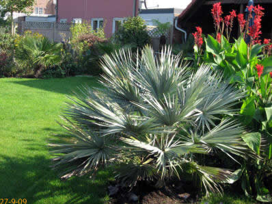 Unser Garten 2009Früher Wintereinbruch bereits Mitte Dezember mit -12,7°C (unter freiem Himmel -15,3°C) Mit zunehmend wärmer werdenden Temperaturen werden die Schäden deutlicher. Der Winter hat einiges an Pflanzen dahingerafft, viele sind stark beschädigt. Momentan ein eher trostloser Anblick im Garten. Na ja, nach vorne schauen -- das wird schon wieder. Die meisten Pflanzen werden sich über den Sommer wieder erholen. Bleibt zu hoffen, dass der Winter ein Ausnahmefall war und uns nun wieder einige mildere Winter bevorstehen. Die nach dem Auspacken so vital wirkende Phoenix hat anschließend stark abgebaut und ich konnte sämtliche Speere entfernen - ein Jammer! Die Trachies haben schwere Schäden, scheinen aber alle überlebt zu haben. Brahea, Butia und Washi sehen noch am besten aus, aber die waren ja auch geschützt. Mit Kälte und reichlich Schnee began das Jahr 2009 wie das Jahr 2008 endete. So schön die weiße Pracht, die man am Niederhein nur selten bewundern kann auch war, so katastrophal war diese Kältewelle allerdings auch für einige meiner Exoten, da ich gerade in diesem Jahr viel riskiert hatte und viele Pflanzen nicht, oder nicht ausreichend geschützt hatte. So gab es nach dieser Kältewelle einige Schäden (siehe unter den einzelnen Pflanzen), die durch bessere Winterschutzmaßnahmen vermeidbar gewesen wären.