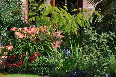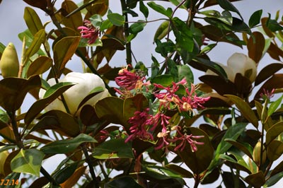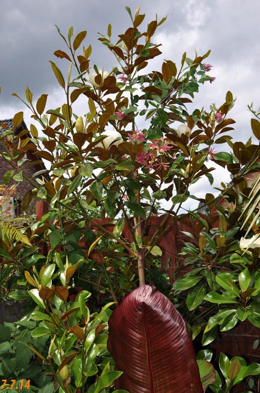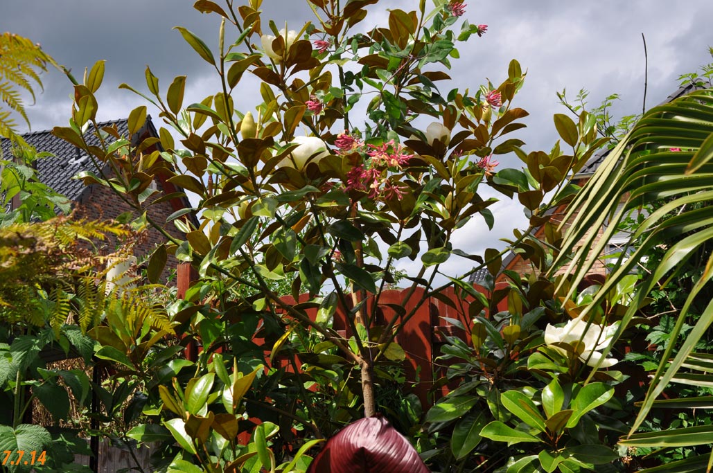 Unser Garten 201419.7.2014 Hitze pur - 36,3°C heute! Meine Pälmchen lieben es und ich auch. 7.7.14 Magnolia grandiflora meets Lonicera! Mir gefällts.