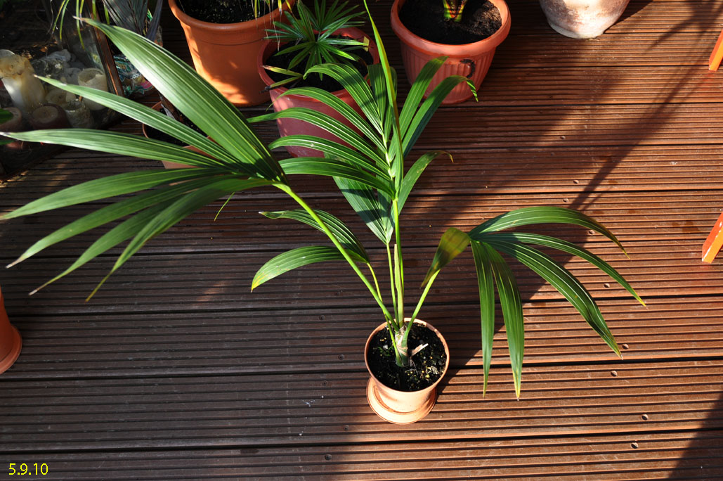 Diese schöne Fiederpalme mit leicht hängenden Blättern kommt endemisch auf der Lord-Howe-Insel 600 km östlich von Südostaustralien vor. Da es eine sehr schöne Beschreibung mit vielen Fotos von Prof. Dr. Markus Riederer online gibt, spare ich mir weitere Details. http://www.kentiapalme.de/Linksammlung/Howea_forsteriana.pdf