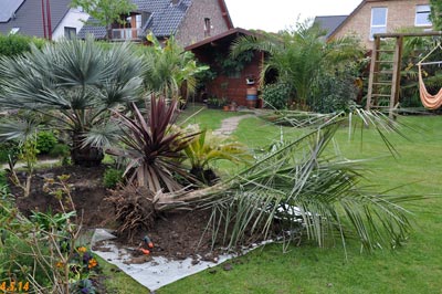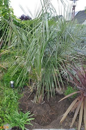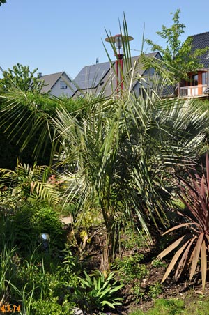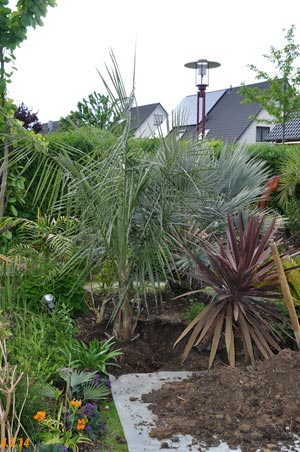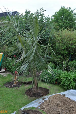 31.5.14 So, nun sind ein paar Wochen vergangen und so wie es aussieht hat die Parajub die Umpflanzung gut überstanden. Bisher sind jedenfalls keine Schäden zu erkennen.