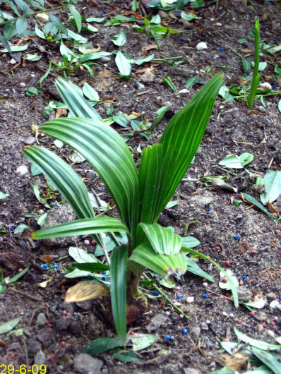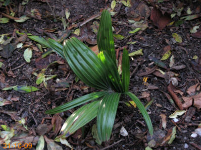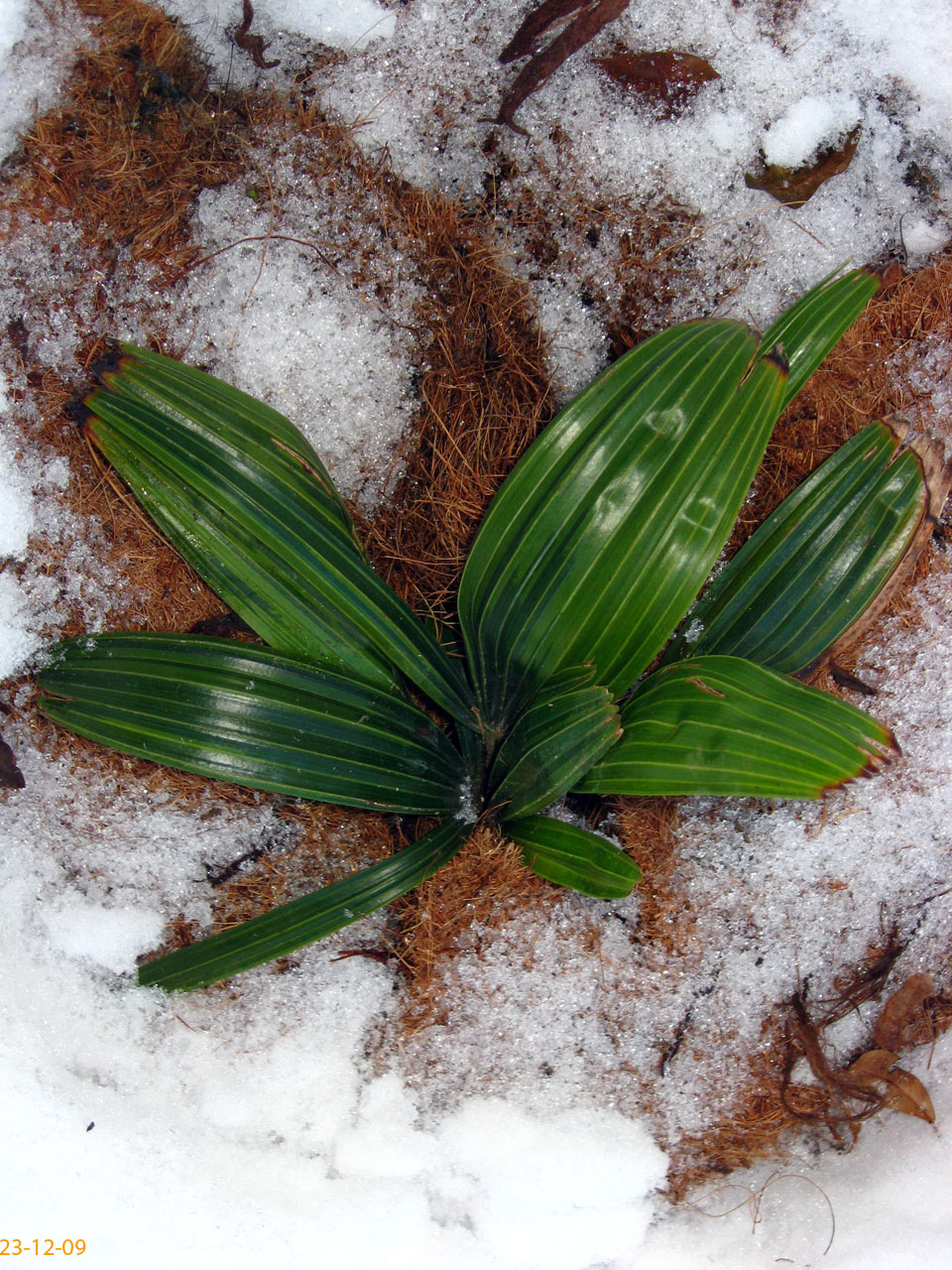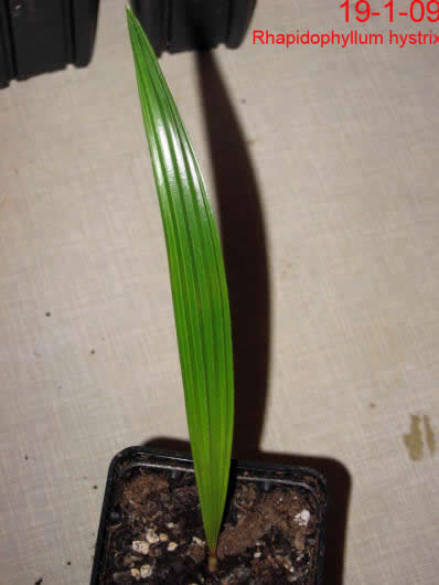 Rhapidophyllum hystrixeine im Unterholz sommergrüner Laubbäume aus dem Südosten der USA stammende, sehr langsam wüchsige, klein bleibende, Ausläufer bildene Palme, die oft buschartig wächst. Charakteristisch ist der mit gefährlich langen Nadeln besetzte Stamm und die stark glänzenden dunkelgrünen Blätter. 2010Scheinbar hat die Needle den letzten Winter doch nicht so gut verkraftet, denn im Jahr 2010 baute sie nach und nach ab - verlor einige Blätter und zeigte praktisch kein Wachstum. Ich nehme deshalb an, dass sie trotz Abdeckung mit Cocosmatte und Rindenmulch durch den lang anhaltenden Frost einen Wurzelschaden hat. Meine Needle scheint den Winter ausgepflanzt gut überstanden zu haben. Allerdings zeigt sich nach diesem Winter, dass viele R. hystrix mit lange anhaltendem Frost bereits bei relativ harmlosen Temperaturen Probleme bekommen. So berichten viele Exotenliebhaber von Schäden an ihren Needles. 2009