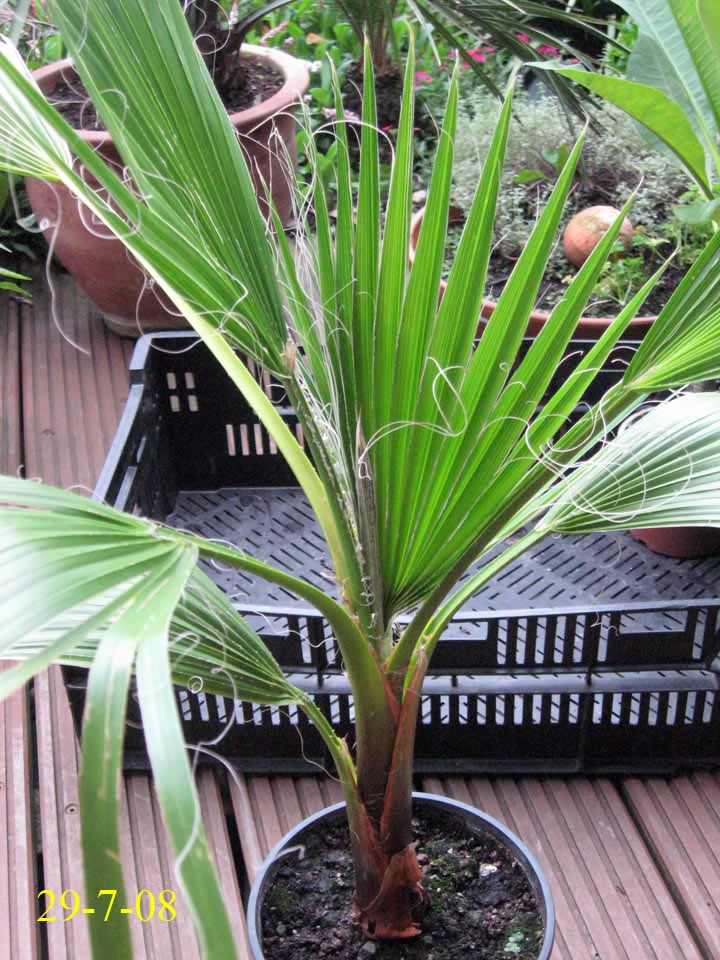 Ausgepflanzte Washis im Krefelder Zoo (die es heute leider nicht mehr gibt) Washingtonia filifera2010Die W. filifera im Kübel hat sich in 2010 prima entwickelt. Schade, dass ich kein Platz mehr im Garten habe, da ich auch diese Palme gerne ausgepflanzt ausprobieren würde um einen direkten Vergleich zur W. robusta zu haben.. 2009